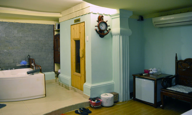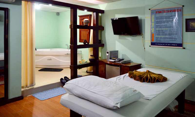 Thailand được ca tụng là “ xứ sở của nụ cười thân thiện ”, hay “ xứ sở chùa vàng ”, với 90 % người dân theo Phật Giáo. Chính cho nên vì thế, khi nhắc đến vương quốc Thailand, người ta tưởng tượng ra ngay những họa tiết của cung vàng giáng ngọc. Để mô phỏng khoảng trống của vương quốc chùa vàng tại đây, những kiến trúc sư đã dựa vào những họa tiết đó, phác thảo ra một khoảng trống trong căn phòng massage tại KS Phú Thọ, với tên gọi : phòng VIP Đất nước xinh đẹp Thái Lan. Phòng được sử dụng gam màu vàng chanh làm chủ yếu, cùng những đường nét của mái hoàng cung nguy nga. Không gian phòng thoáng rộng, được trang bị bồn tắm, giường massage, buồng xông hơi, cùng nhiều tiện ích khác. Khi chọn phòng này, khách sẽ được tận thưởng thời hạn thư giãn giải trí tự do với khá đầy đủ tiện lợi, giúp cho thời hạn nghỉ ngơi tăng thêm giá trị .